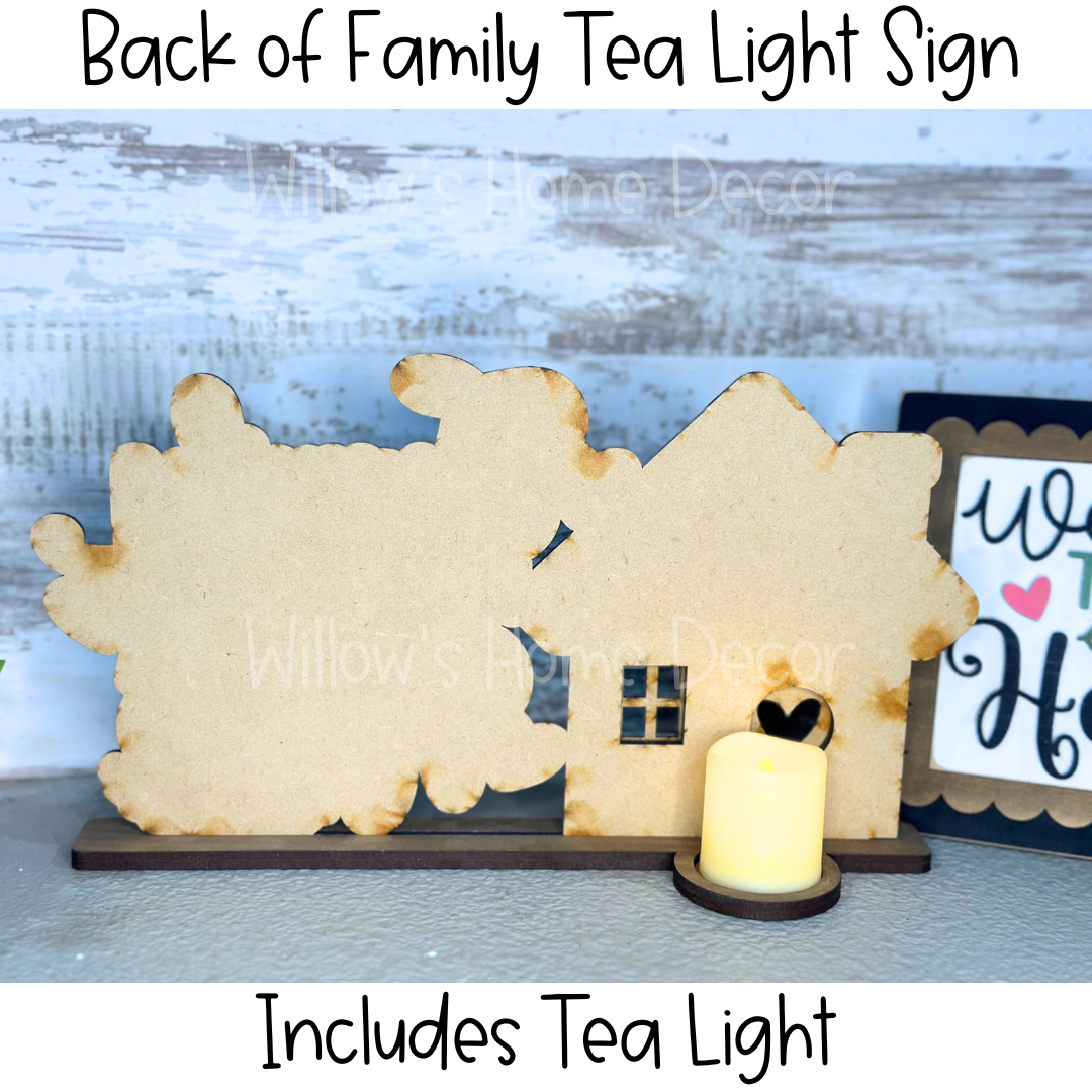 Family Tea Light Sign + Welcome To Our Home Square Sign -