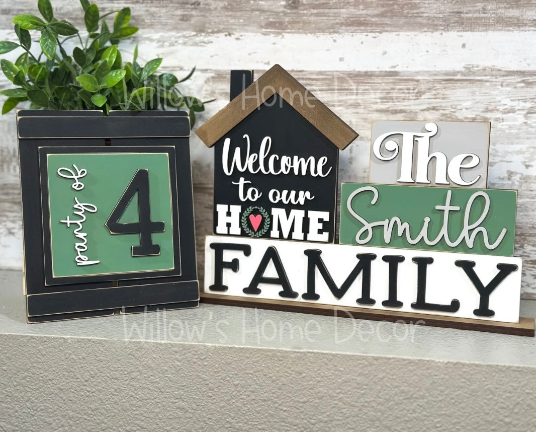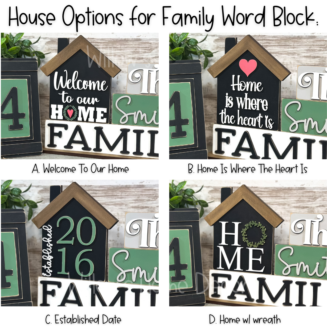 Family Word Block w/ House + Party of __Sign - Include your last name & the number of your party :)